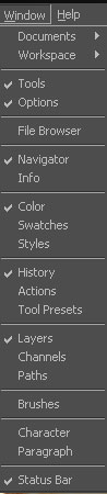 که تمام پانل ها در منویWINDOW وجود دارند که با